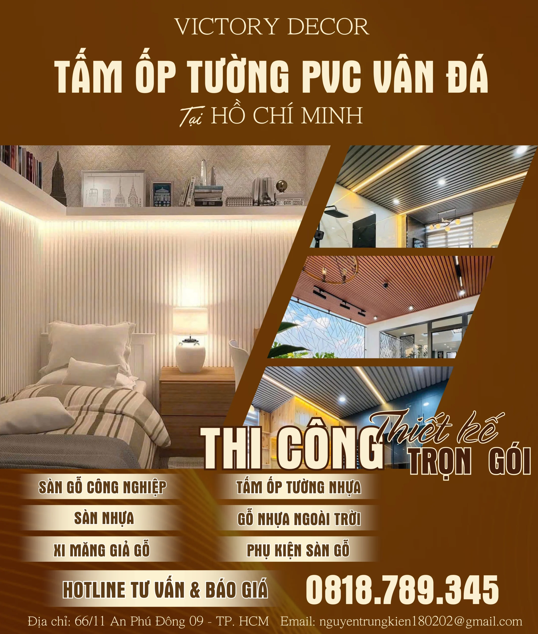 Tấm ốp Victory trở thành lựa chọn hàng đầu trong trang trí nội – ngoại thất tại Việt Nam, đặc biệt là ở các đô thị lớn như TP. Hồ Chí Minh. Với sự kết hợp hài hòa giữa vẻ đẹp thẩm mỹ, độ bền vượt trội và khả năng chống ẩm, chống mối mọt, tấm ốp Victory không chỉ được ứng dụng cho nhà ở dân dụng mà còn phổ biến trong các công trình thương mại, văn phòng, showroom và nhà hàng cao cấp.